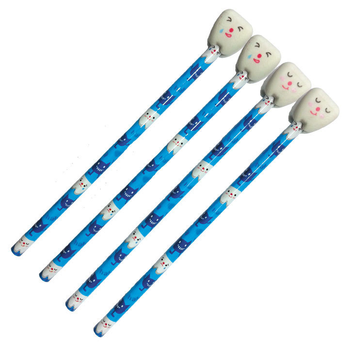 24 Bleistifte blau mit Zahnmotiven und einem großen Zahn-Radiergummi Top.