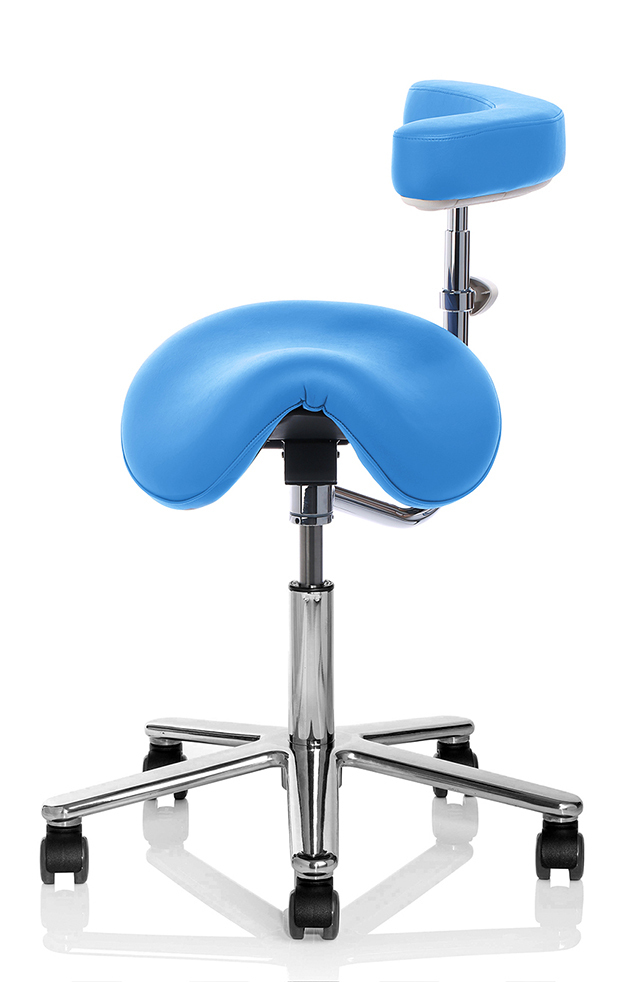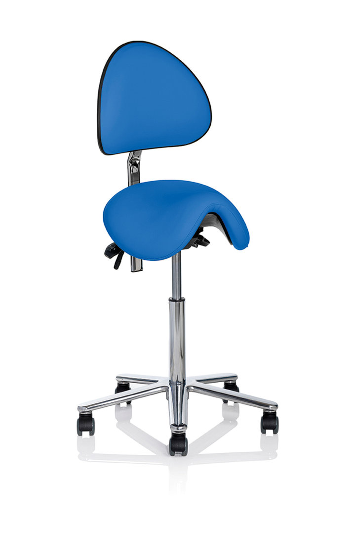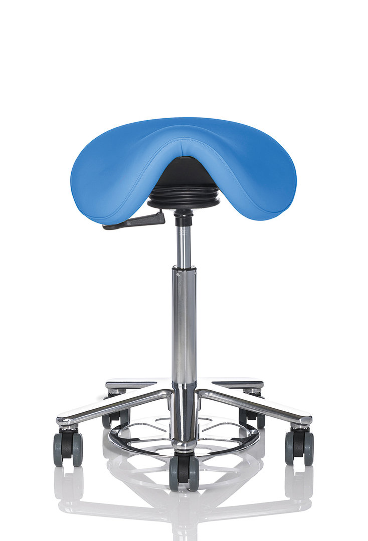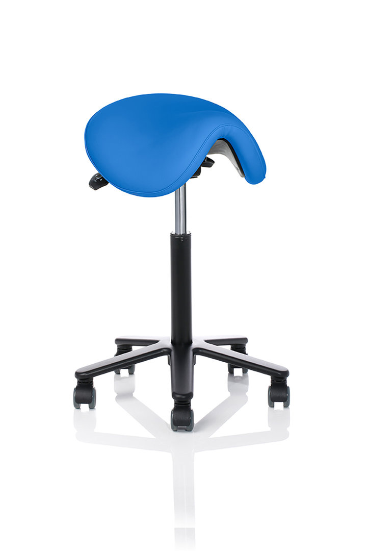 Sattelstuhl mit breite (ca. 44cm) weiche Sitzfläche, perfekt für größere Personen.