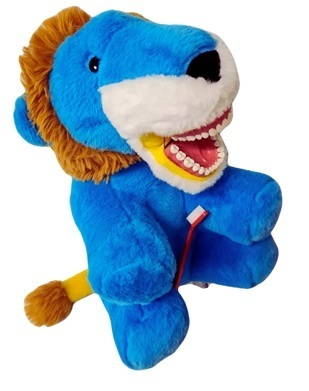 Die blaue Demopuppe (keine Handpuppe) Löwe ist etwa 45 cm groß und wurde speziell für Zahnarztpraxen entwickelt. Sie kommt inklusive einer Zahnbürste und eignet sich hervorragend, um Patienten auf spielerische Weise an die Zahnpflege heranzuführen oder Ängste vor Behandlungen zu verringern. Damit trägt sie dazu bei, eine freundliche und entspannte Atmosphäre in der Praxis zu schaffen.