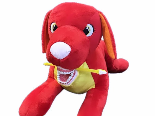 The red dog demo puppet is approximately 90 cm tall and was specially designed for dental practices. It comes with a toothbrush and is excellent for introducing patients to dental care in a playful way or reducing fears about treatments. This helps create a friendly and relaxed atmosphere in the practice.