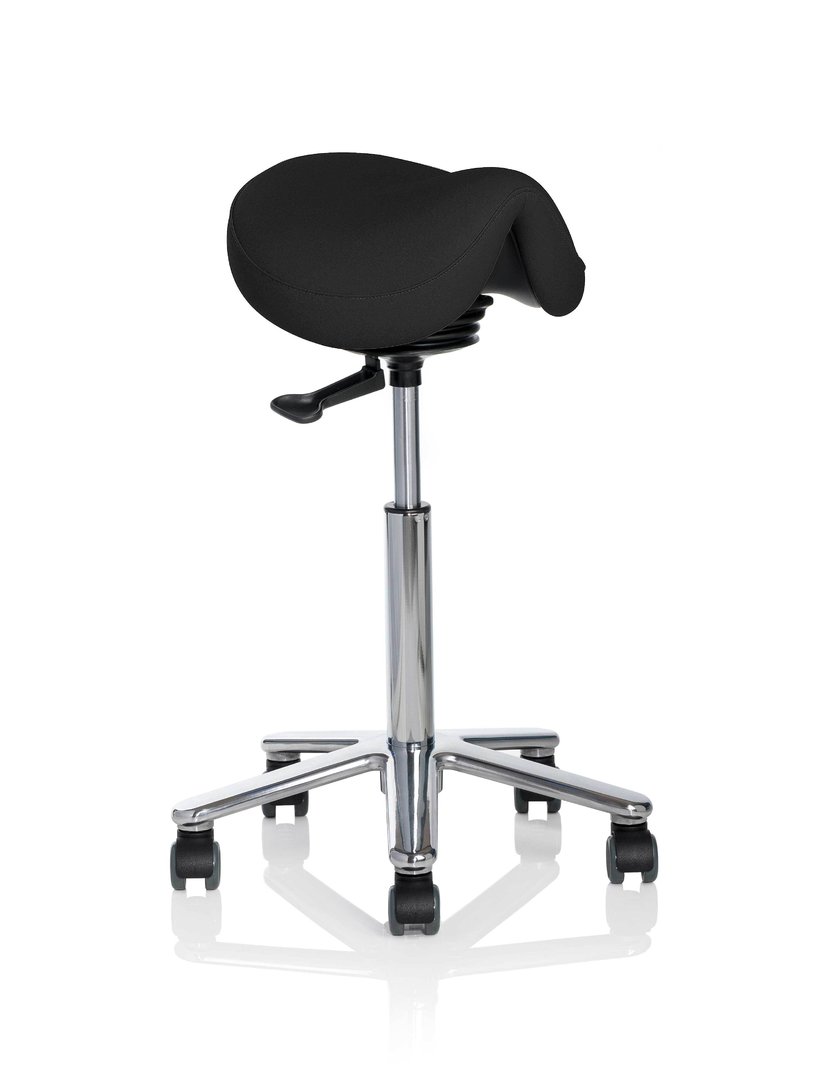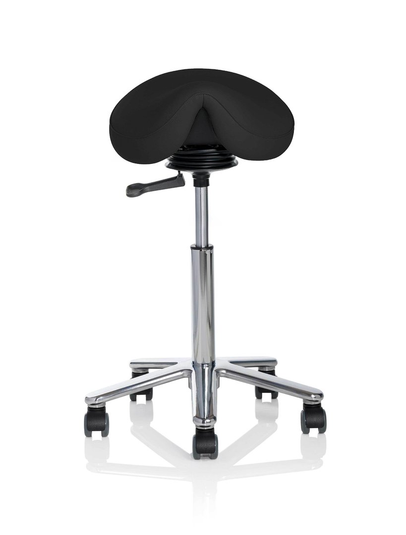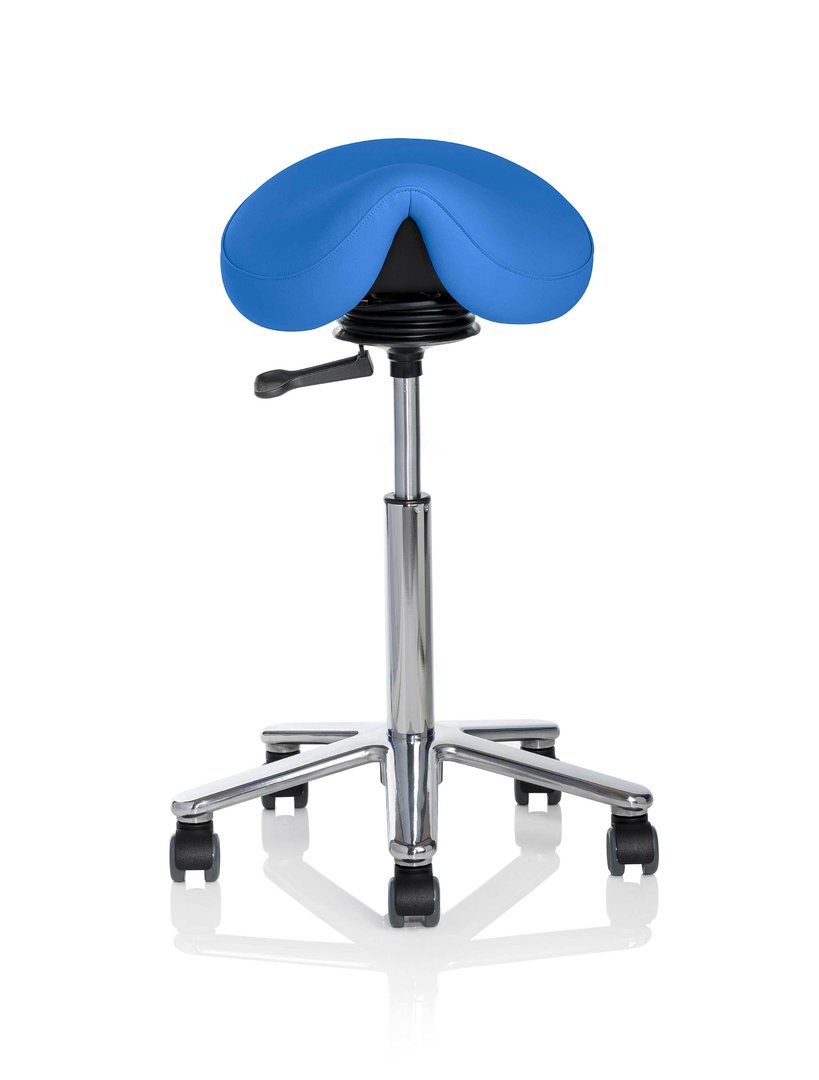 Ein kleiner, weicher Sitz, dessen schmale Form eine kompakte Sitzposition ermöglicht. Hebel für die Höhen- und Neigungsverstellung befinden sich unter dem Sitz. Speziell für Benutzer entwickelt die nicht so breit sitzen möchten.