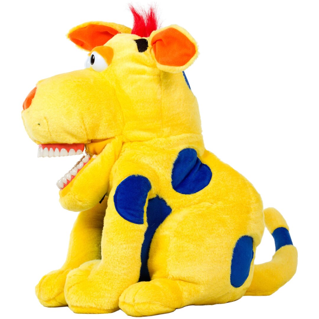 Beim Hund Pluto handelt es sich um eine Handpuppe. Ein Eingriff befindet sich auf dem Rücken. Die niedliche, große Handpuppe ist aus Plüsch und hat ein großes Demonstrationsgebiss. Bei Druck auf eine innen versteckte Plastikflasche kann sie sogar Wasser spucken. Die Riesenzahnbürste erhalten Sie zu jeder Handpuppe gratis dazu! Diese fröhliche Zahnpuppe hilft spielerisch bei der Prophylaxe-Erziehung! Originalgröße: ca. 50 cm