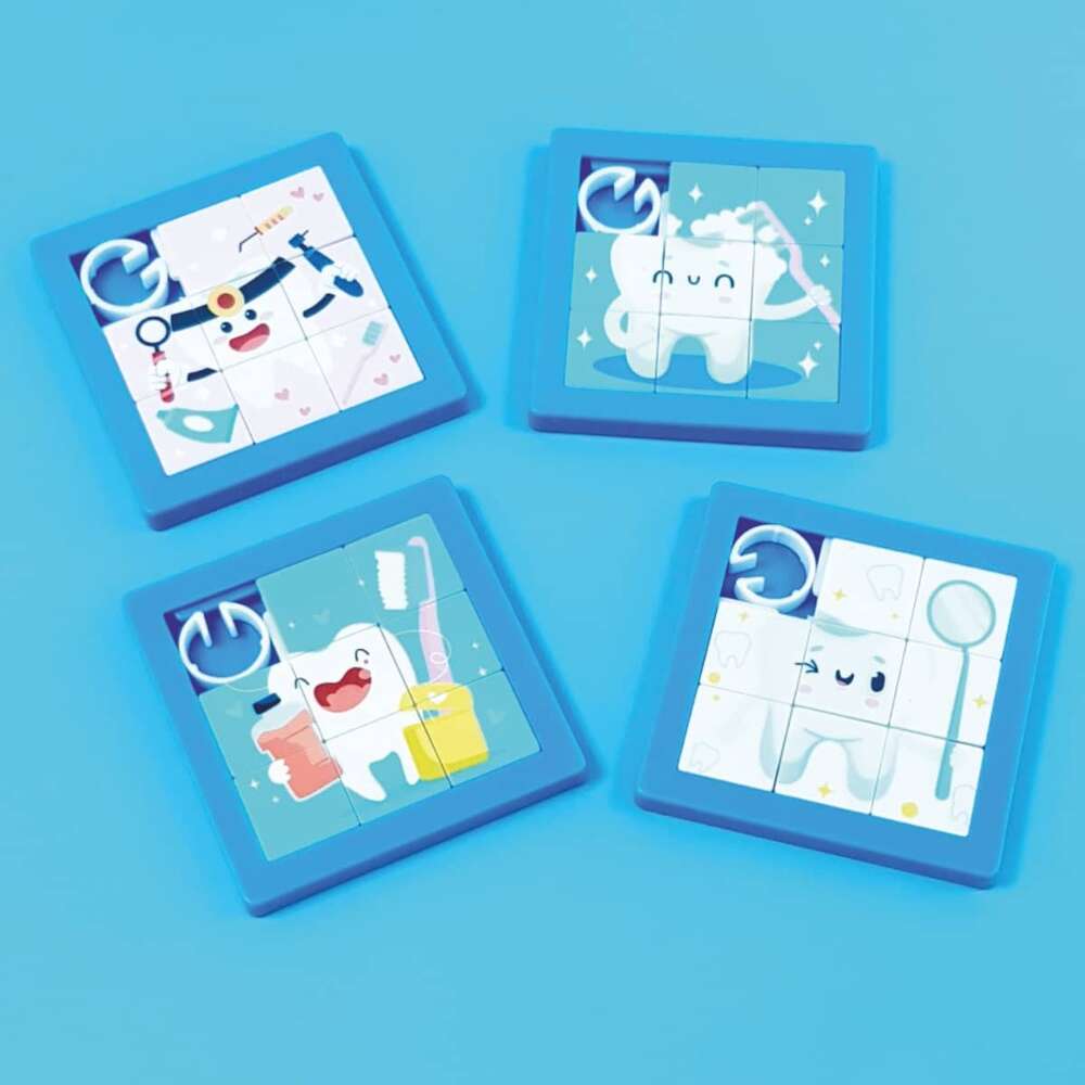 Spannendes Geduldspiel mit fröhlichen Zahnmotiven. Die kleinen Schiebepuzzles fördern Konzentration und Fingerfertigkeit. Sortiert. Bringen Sie Spaß und Wissen unter einen Hut! Bestellen Sie noch heute Ihre 24 Schiebepuzzle mit Zahnmotiv und machen Sie Kindern und Erwachsenen gleichermaßen eine Freude. Spielerisch zu gesunden Zähnen! Größe ca. 5,2 cm