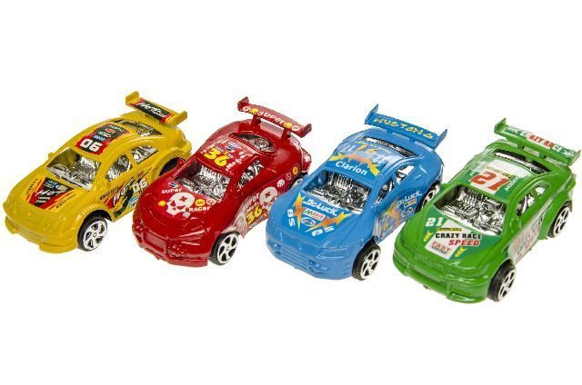 24 Sportautos mit Rückzug in den Farben rot, gelb, grün und blau. Orginalgröße: 8,0 cm.