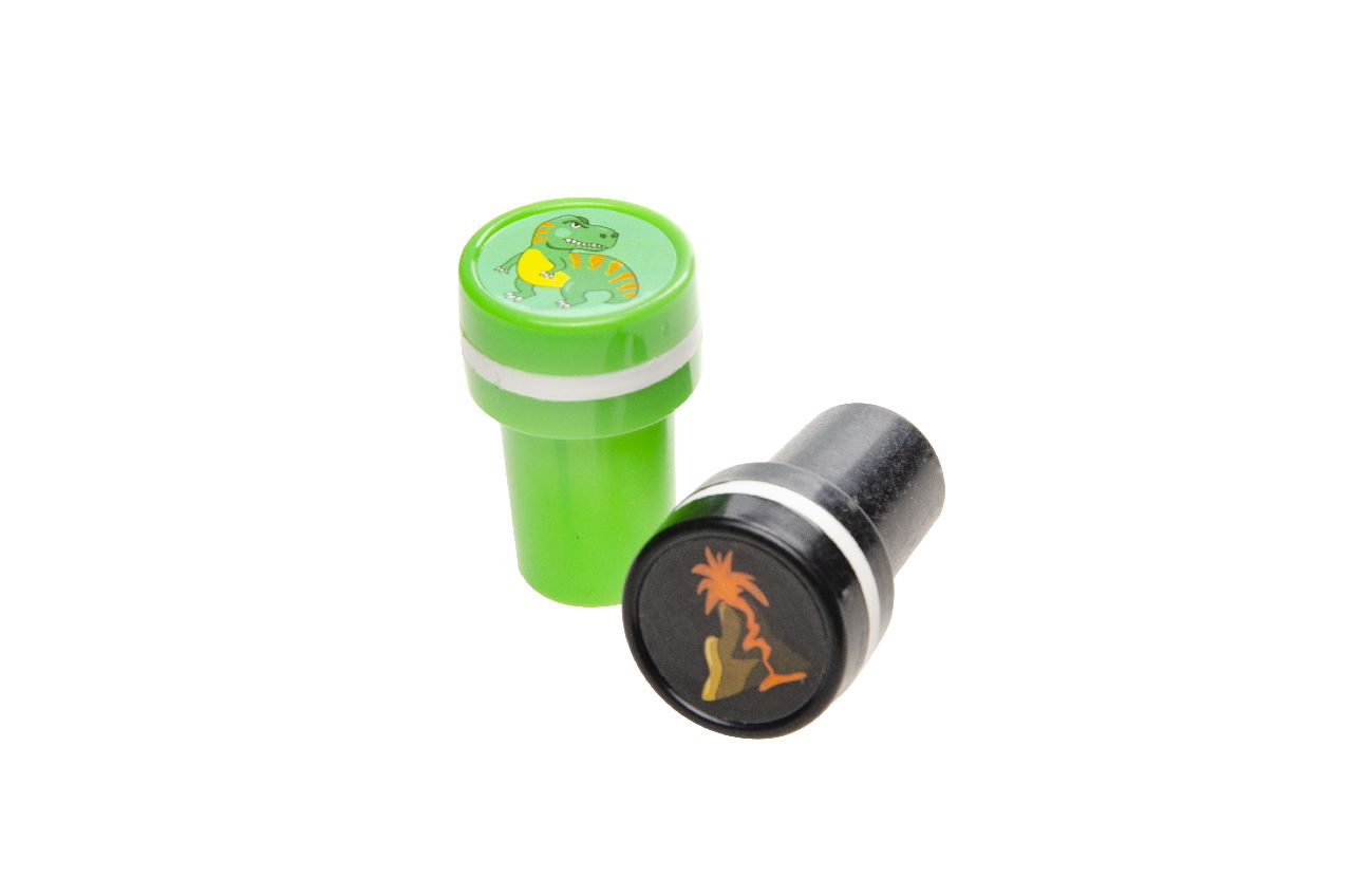 Art. No. 9000 60 pieces in the display, size: 3.5 x 3.0 cm. Stamp with dinomotive in different colors.