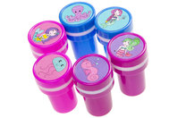 Art. No. 973 60 pieces in the display, size: 3.5 x 3.0 cm. Stamp with mermaid in different colors.
